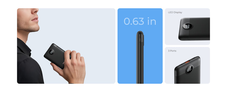 [ Compact & Lightweight Mini Power Bank ] This small power bank packs a powerful 10,000 mAh capacity into a remarkably compact and lightweight design. Measuring just 4.2 x 2.7 x 0.6 inches and weighing only 5.8 ounces, it's the perfect portable charger to take anywhere and easily fit in your pocket, wallet or handbag, making it convenient to carry and charge your mobile devices. Small but powerful, the 10,000 mAh powerbank provides ample charging capacity for your phones on the go.